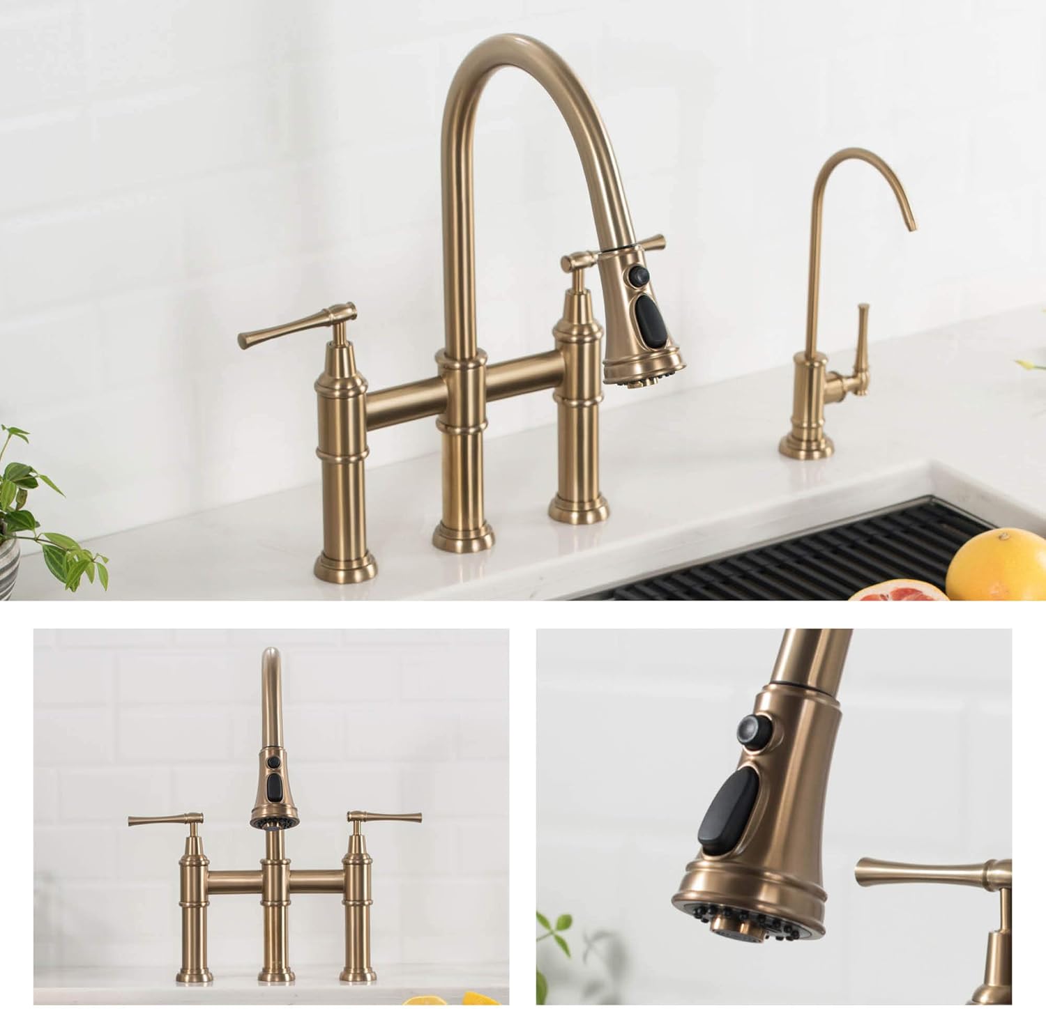 Kraus Gold Kitchen Faucet / Kraus Bolden Commercial 1 Handle Pull Down Kitchen Faucet And Purita Water Filtration Faucet In Brushed Gold Kpf 1610 Ff 100bg The Home Depot