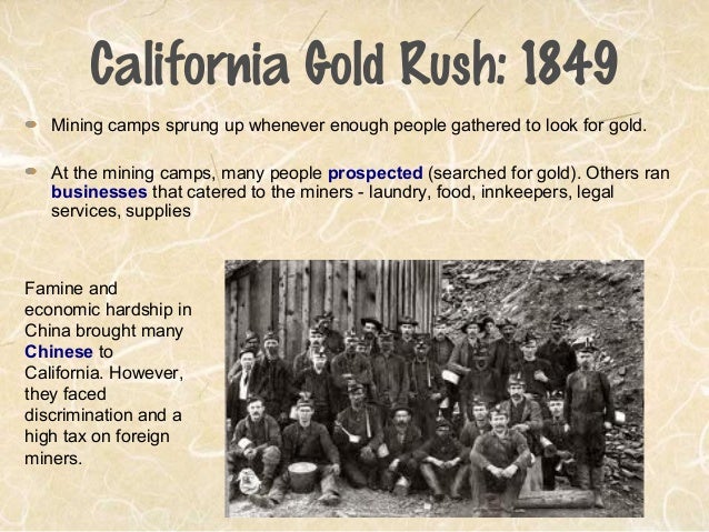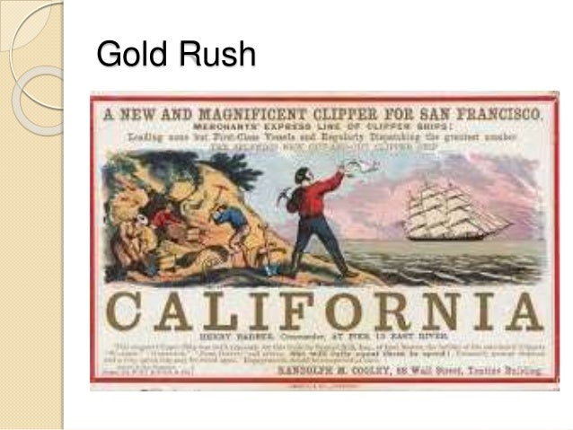 Also after the industrial revolution many farmers coul simply not afford a living. As the united states extended its boundaries, new branch. As rumor made its way around the world millions traveled to california for the prospect of fortune. The gold rush was the mass migration to california by miners, and the merchants who made money off of them. 1845 john osullivan coined this phrase.